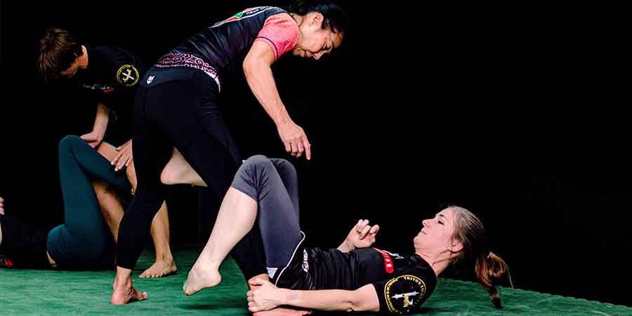 All no-gi classes recommend students wear a rashguard/compression t-shirt and MMA/grappling/board shorts (no pockets, loops, or other items that fingers can get caught in). T-shirts are OK for visitors but are not recommended for long term training (they get sweaty and stretch out, and really aren't comfortable to train in). Compression shorts, spats, or leggings under training shorts are required. Gi pants are allowed but not recommended. Female students are required to wear a sports bra under their rashguard for comfort and safety.