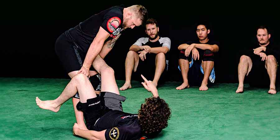 After all techniques have been shown, coaches will pair students up for sparring or resistance drilling starting from a specific position.